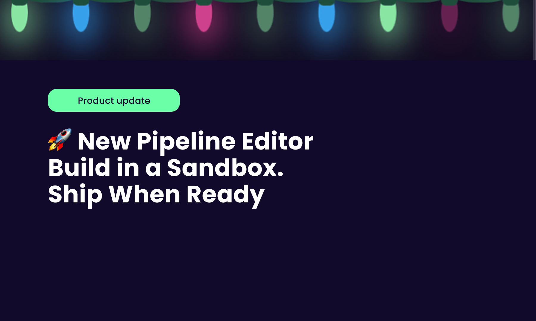 Teams ship faster when they can experiment without fear. The new Pipeline Editor gives you a safer development loop and tighter control over how changes move from idea → draft → production.